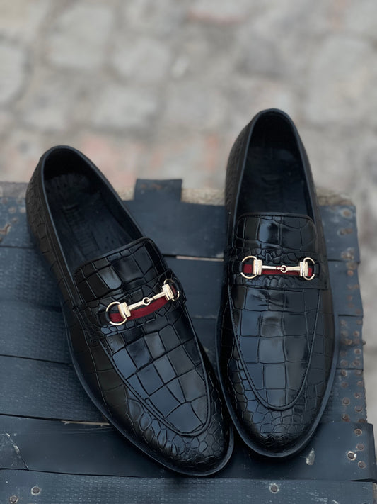 4031-بلیک کروکو لیدر ہارس بٹ فارمل