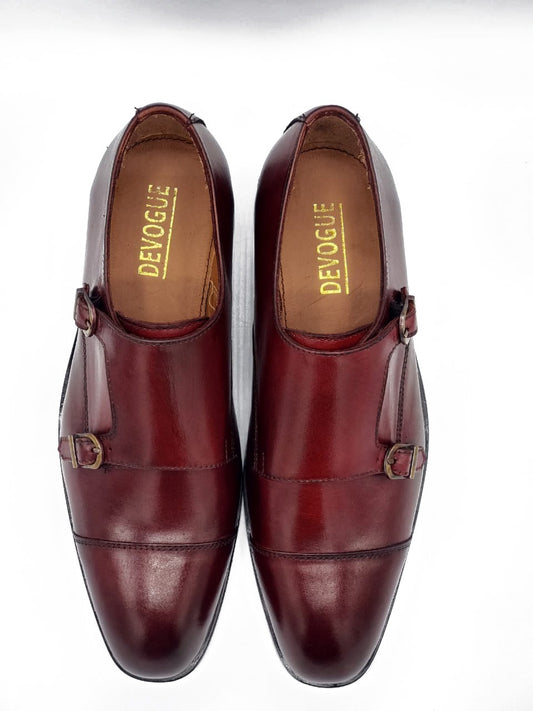2011-برگنڈی گائے کا چمڑا فارمل ڈبل مانک اسٹائل